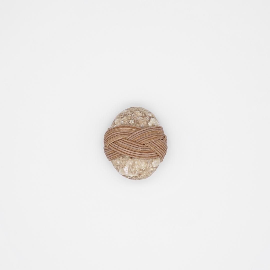 自然の中で生まれた豊かなフォルムを持つ石を、一本の革紐を使い伝統的な結びによって包んだラップドストーン。