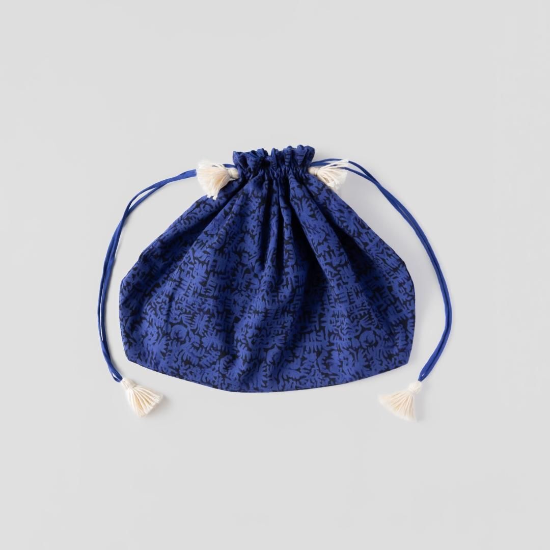 インドの手織り布であるカディコットンを使い、日本で縫製したSuno&Morrisonの巾着バッグ。