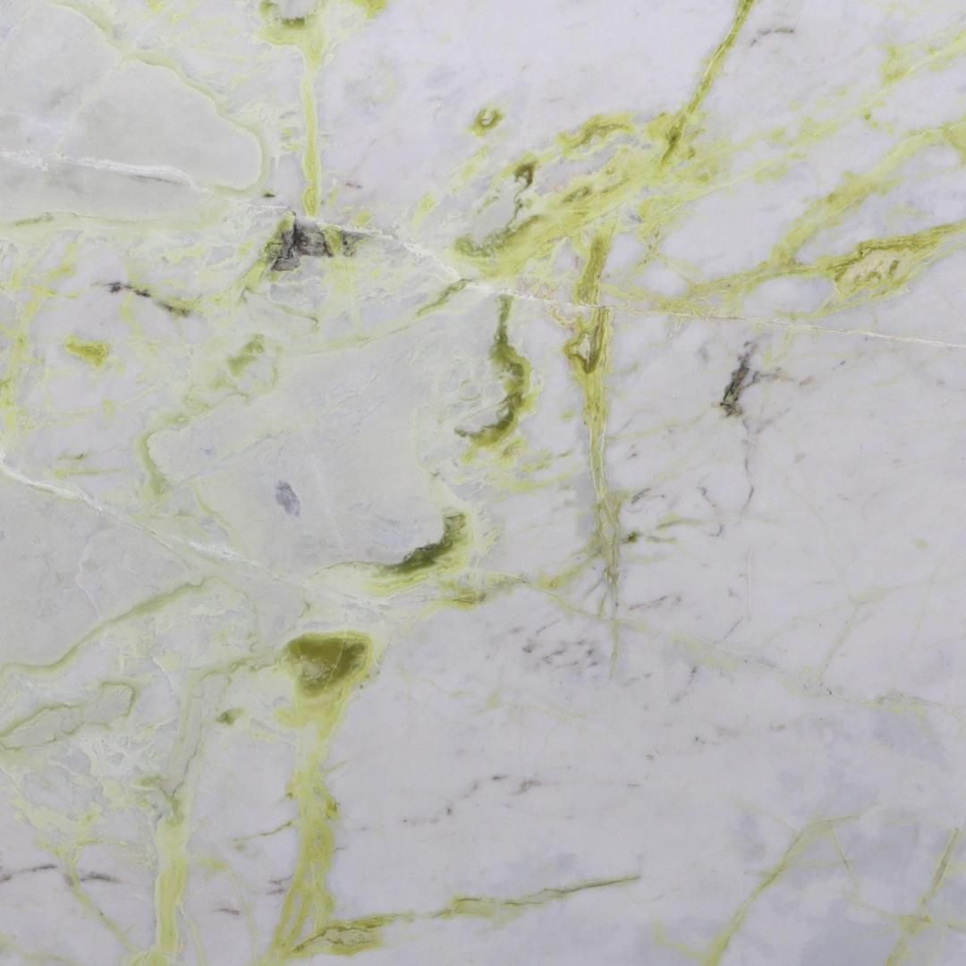ライムの様な爽やかな色彩が差し色で映え、清涼感を感じさせる透明感をもつ大理石。