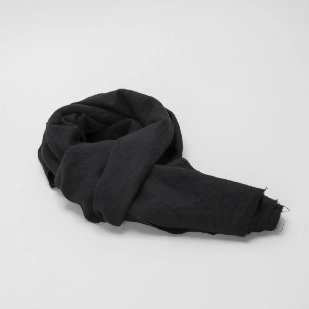 マフラーというよりはただの布に近いかもしれませんが、縮絨ウールの素材感をそのままにお楽しみいただけると思います。